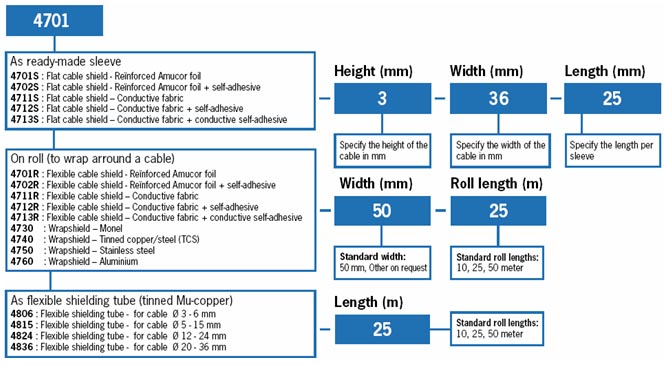 The cable shield can be grounded at one end, or both ends of the cable. Cable shielding can be supplied as a ready-made sleeve, on rolls or as a flexible shielding tube. It comes either in continuous lengths, on a reel or cut into lengths.